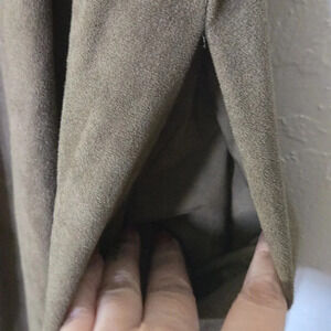 Mid weight micro suede dress with front hidden button closure, pleated skirt and side pockets. Does not have a belt but does have the loops if wanted.