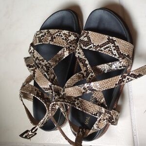 Val Aruzo Zoe Snake Print Strappy Flat Summer sandals Size 6 Travel