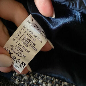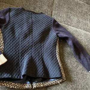 Stylish Val Max jacket. Navy sleeves with gray tweed wool body. Perfect for any occasion.