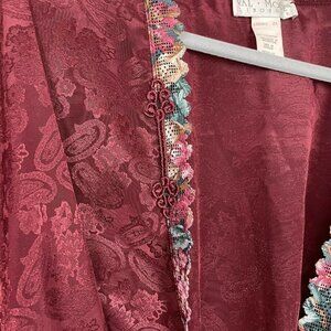Val Mode Lingerie Red Brocade Short Robe Lace Trim Vintage Size Medium
