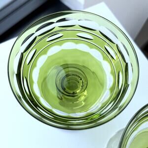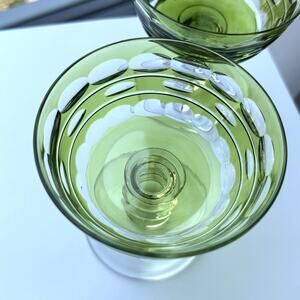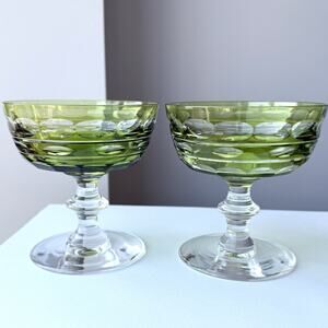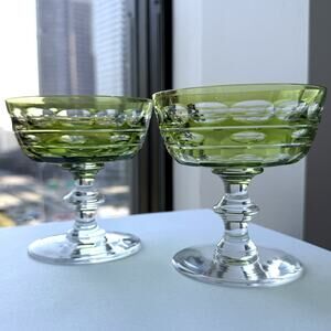 Val St Lambert Blarney Green Sherbet/Champagne Glass Set of 2 Cut to Clear 4"