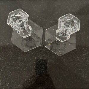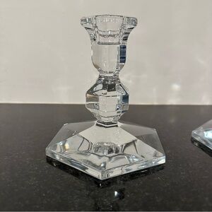 Set of two Val st. Lambert Elegant crystal candle holders perfect for adding a touch of sophistication to any room. The clear design complements any decor style. Perfect for holidays, Christmas, wedding,