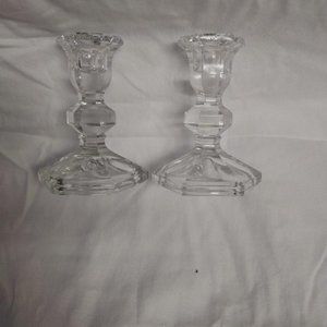 Vintage Val St Lambert Gardenia Crystal Candle Holders Made in Belgium Lead Crystal