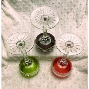 Val St. Lambert Set of (3) Color (Red, Green, Black) Cut Crystal Wine Hocks