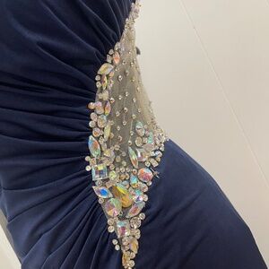 Val Stefani Prom Navy Blue One Shoulder Beaded Mesh Cutout Gown Size 6 Formal