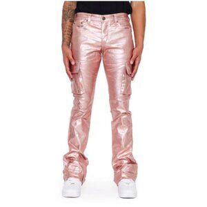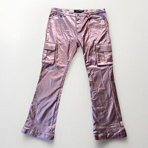 Valabasas Men's 42x34" Pink Cozart Wax Stretch Cargo Denim Stacked Flare Jeans