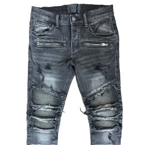 Valabasas Mens Black Distressed Skinny Jeans 29 Buttonfly Designer Denim