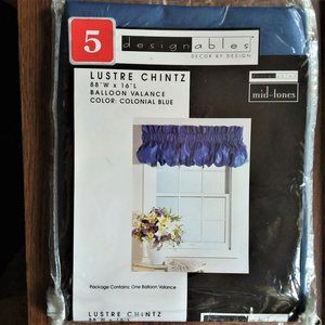 VTG Designables Luster Chintz Balloon Valance Curtain Colonial Blue 88 X 16 New