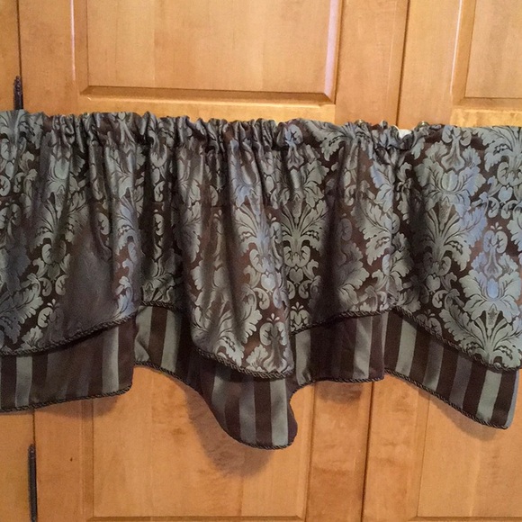 Set of two valances. Blue and brown. Fully lined. Both panels are 54” wide and about 19” long.