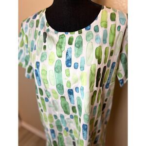Valanio Green Geometric Watercolor Print Notched Short Sleeve Top (L)