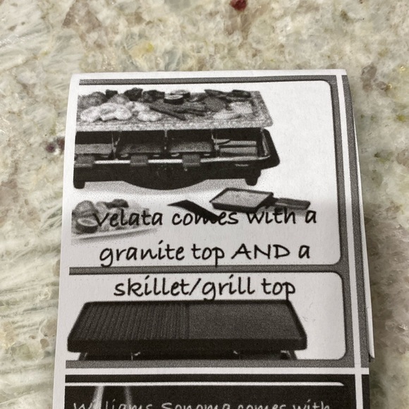 Valata Grill comes with a granite top and a skillet/grill top Brand new in box. Includes 8 individual nonstick broiling grays and spatulas Adjustable thermostat to 420 degrees. Can be used indoors or outdoors great for a camper. Shipping charges will be upgraded