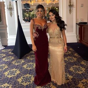 Valdrin Sahiti Dress Velour Maroon/ Gold Dress