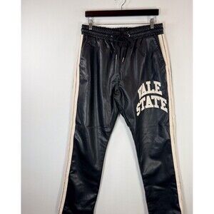 Vale State Mens Track Pants Black Leather Straight Streetwear Large