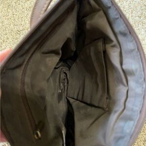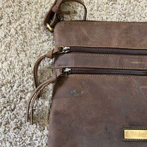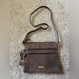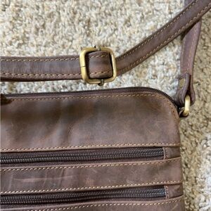 • Design and Features: This crossbody bag features multiple pockets for organization, including 2 exterior zippered pockets with leather pulls and interior zipper with brass pull, a phone holder pocket