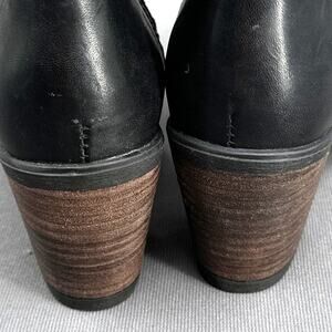 TITLE: Valencia Black Leather Ankle Boots Womens 7-7.5 Western Biker Booties Side Zip