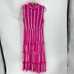 Valencia & Vine Mia Mock Neck Midi Floral Dress Tiered cotton size M womens