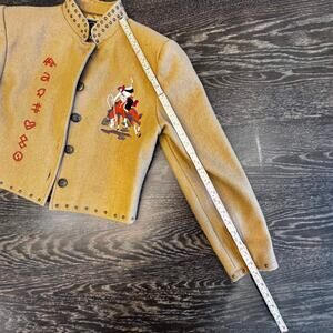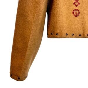 Valencia Wool Western Cowboy Embroidered Jacket Womens L Tan Studded Rodeo Coat
