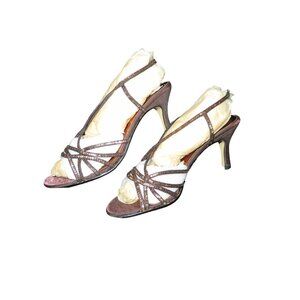 Valenti Franco Luann Bronze Italian Leather Strappy Glitter Heels Sandals 7.5