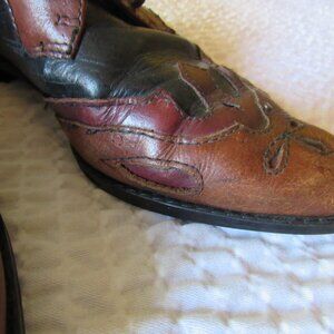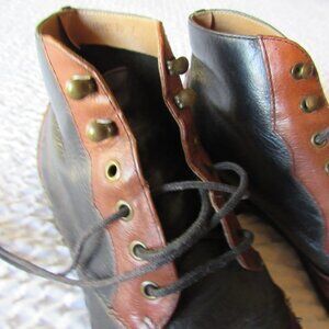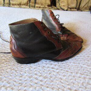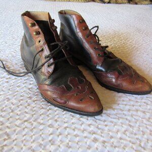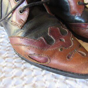 Valenti Leather Ankle Boots 7 Brown Black Piecework Lace Retro Designer Shoes