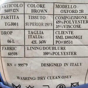Valenti Uomo Suit 2 pc 42L x 36x32 pants Brown - in excellent condition - The Valenti Uomo 42L x 36x32 2-piece Suit in brown are a stylish and sophisticated choice for men. Made from a blend of polyester and viscose, these dress pants feature a straight leg style and a flat front design. With a waist size of 36 inches, they offer a comfortable and flattering fit. Additionally, these pants include pockets for added functionality. Perfect for professional or formal occasions, these Valenti Uomo pants exude quality and class in a versatile brown color