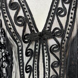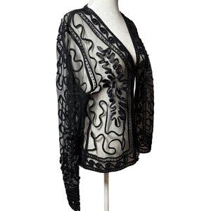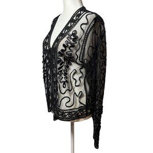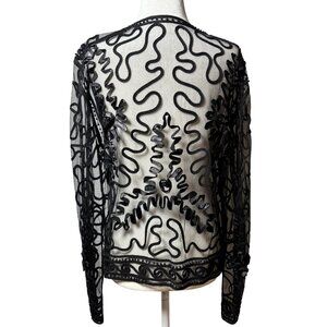 Valenti Womens M Black Sheer Embroidered Long Sleeve Top With Beaded Details