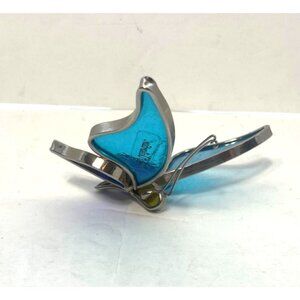 Valentien Blue Silver Butterfly Glass Suncatcher For Decor