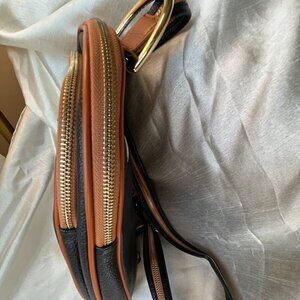 Compact multiway backpack and shoulder bag, easily unzip the strap to turn it into a backpack, 100% Italian leather.