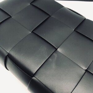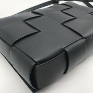 Valentina Fiore Woven Black Leather Messenger Crossbody Bag