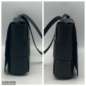 Step into urban elegance with the Valentina Fiore Woven Black Leather Messenger Crossbody Bag, where classic style meets modern functionality. (4918-5RU-10.24)