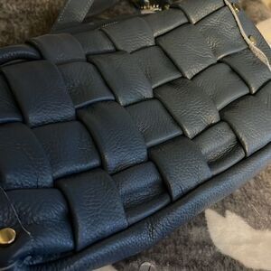Valentina Fiore blue weave gold stud chain Italian leather shoulder bag