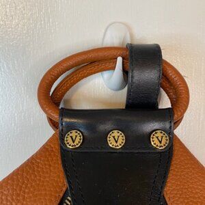 Elevate your style with the Valentina leather backpack. Features a bold orange and black design. Ideal for versatile use.