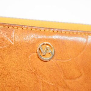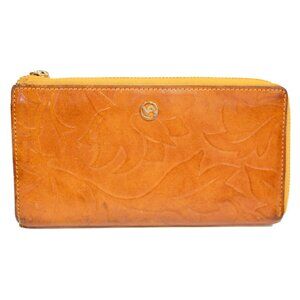 Valentina Italy Embossed Leather Floral Clutch Zip Around Wallet
