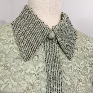 Valentina Ltd 1960s Heavily Embroidered Glass Beaded Collar Bodice Wide Cuffs and Ball Faux Buttons, Sheer Lace Long Sleeve Fully-lined With Floral Lace Overlay Tunic Shirt Dress