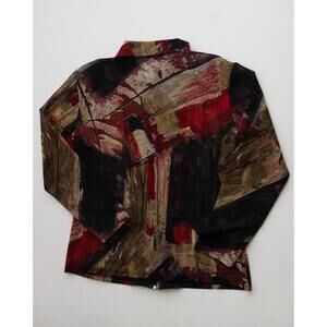 Valentina statement jacket with multicolor abstract pattern and rhinestone embellishments. Lightweight, structured fit. Size Medium.