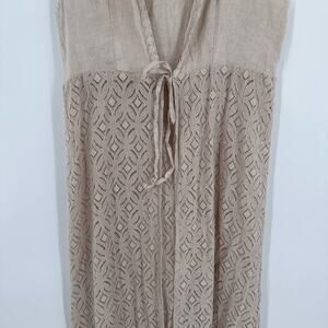Valentina Naldi Duster Womens One Size Tan Linen Cover Up Sleeveless Tie Front