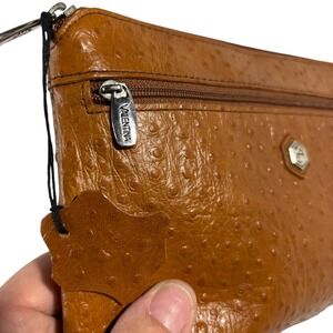 Valentina Ostrich Leather Clutch Bag Zip Top Pouch Handbag*