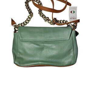 Valentina Pebbled Genuine Leather Green Brown Medium Handbag/Shoulder Purse NWT