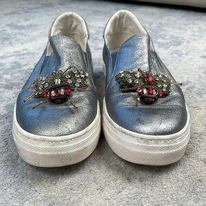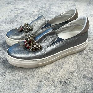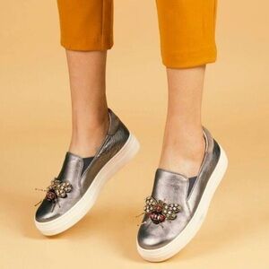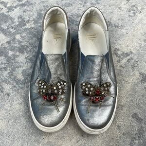 Valentina Rangoni Samurai Fashion Loafer Sneakers Metallic Silver Moth Beetle 9