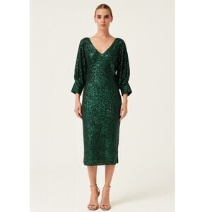 Valentina Shah Adelina Sequin Midi Dress Medium / Large Green NWT