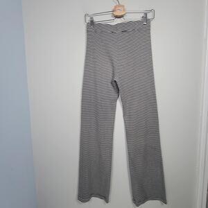 Valentina Shah women’s pull-on pants, size Medium. Black and white striped pattern, straight leg, elastic waistband. Made in Italy from a soft nylon-elastane blend.