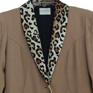 Valentina Shah Single Breasted Blazer Jacket Size 6 Camel Tan Leopard Lapels