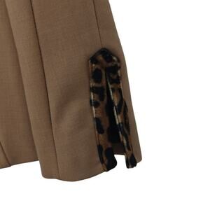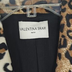 Valentina Shah single breasted blazer jacket in women's size 6. Camel color with leopard fur lapel. One button closure. Pockets are still sewn shut and have leopard trim. Sleeves are slit with leopard trim as well. Fully lined .