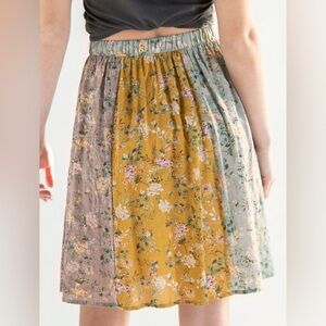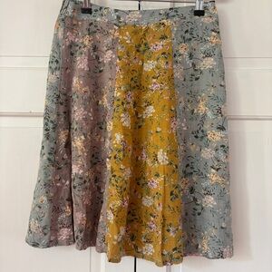 Valentina Skirt Light Blue Floral Mix Mustard Lavender Patchwork Size Medium Knee Length