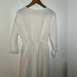 Elegant white mini dress. Features delicate lace trim. Perfect for any occasion.