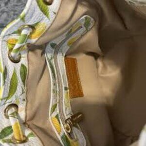 BRAND: Valentina* This Valentina Raffia Crossbody bag is a colorful and fun addition to any outfit.* The drawstring closure and crossbody strap make it perfect for travel, parties, or casual outings.* The bag features a pebbled finish, gold hardware, and legs for added durability.* The lemon pattern and happy character accents add a playful touch, while the multicolor exterior and beige lining complement each other perfectly.* Measuring 8 inches in width and 9 inches in height, this medium-sized bag is made in Italy with high-quality leather trim and rayon fabric type.* Perfect for any summer or vacation-themed occasion, this Valentina Raffia Crossbody is sure to turn heads.