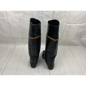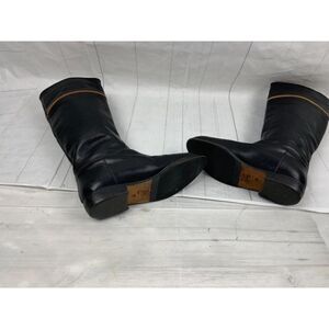 Valentina Black Boots With Tan Trim. Sz 36 Heel height 1”. Circumference 5”. In real good shape.