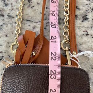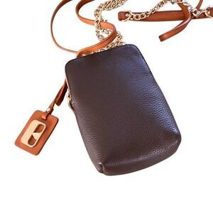 Valentina Womens Pebbled Leather Chain Strap Crossbody Bag Brown NWT