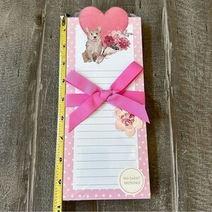 NWT adorable pink hearts bouquet corgi dog print notepad stationary. Great valentine gift. Has magnet on back.