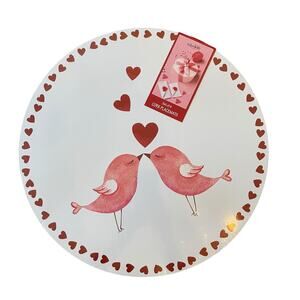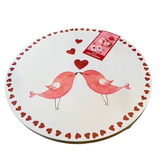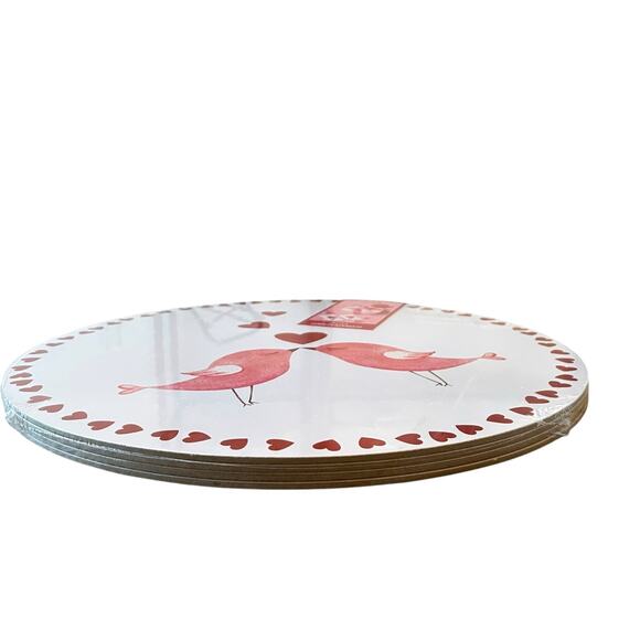 Valentine LOVE BIRDS 15” Round Cork Backed Hard Placemats Set of 4 NEW