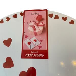 Colordrift Valentines Cork Backed Hard Placemats 15" Pink Love Birds & Hearts